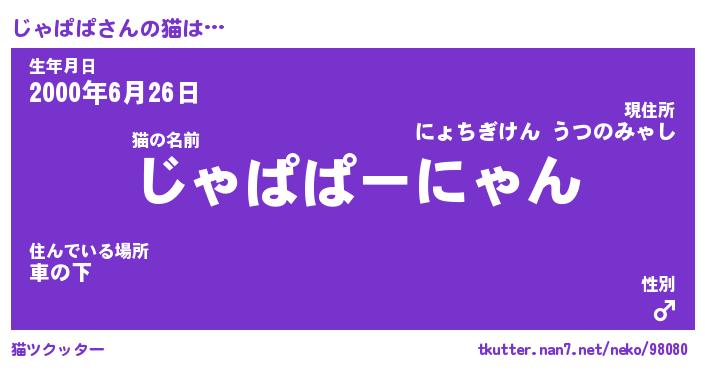 | 意味不明あだ名 | 『ペロリンじゃぱぱ』『永久保存じゃぱぱ』 |