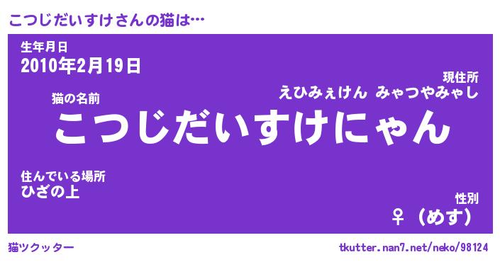 | 男性向けラノベタイトル風あだ名 | 『こつじだいすけの憂鬱』 |