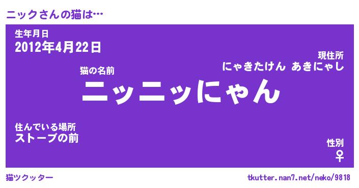 | ポケモン風あだ名 | 『ニッチュウ』『ニックダネ』 |