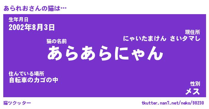 | 生年月日? …「くろねこ」 | 8月01日 10:16 |