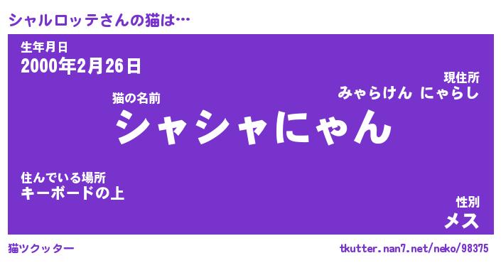 | ヒーロー風カッコイイあだ名 | 『スーパーシャルロッテ』『天弓騎士シャ』 |