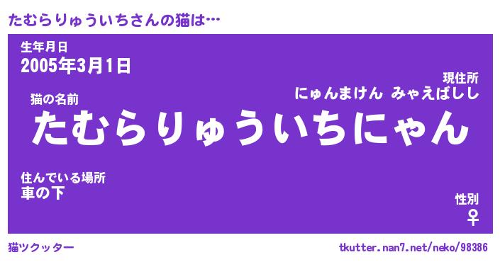 | 肩書あだ名 | 『たむらりゅういち御曹司』 |