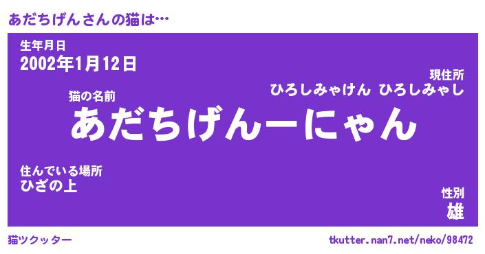 | ポケモン風あだ名 | 『アダチュウ』『アダチダネ』 |