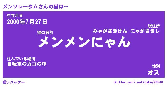 | ポケモン風あだ名 | 『メンチュウ』『メンソダネ』 |