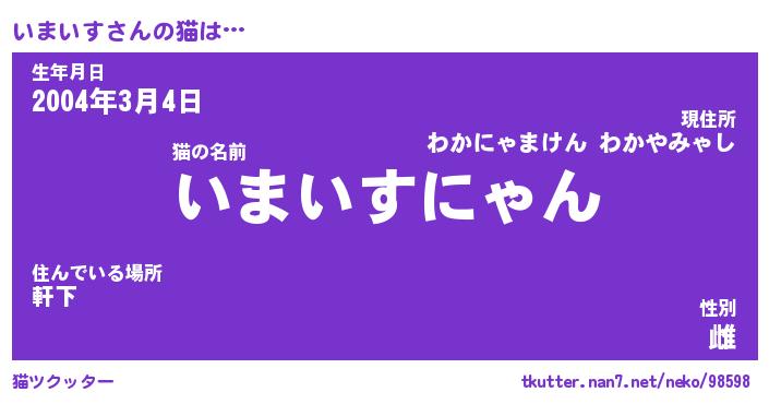 | ポケモン風あだ名 | 『イマチュウ』『イマイダネ』 |