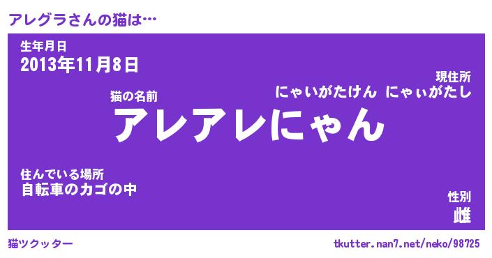 | ヒーロー風カッコイイあだ名 | 『スーパーアレグラ』『天弓騎士アレ』 |