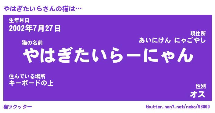 | 生年月日? …「くろねこ」 | 8月01日 10:16 |