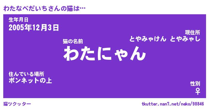 | ポケモン風あだ名 | 『ワタチュウ』『ワタナダネ』 |