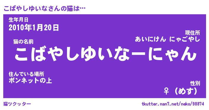 | ポケモン風あだ名 | 『コバチュウ』『コバヤダネ』 |