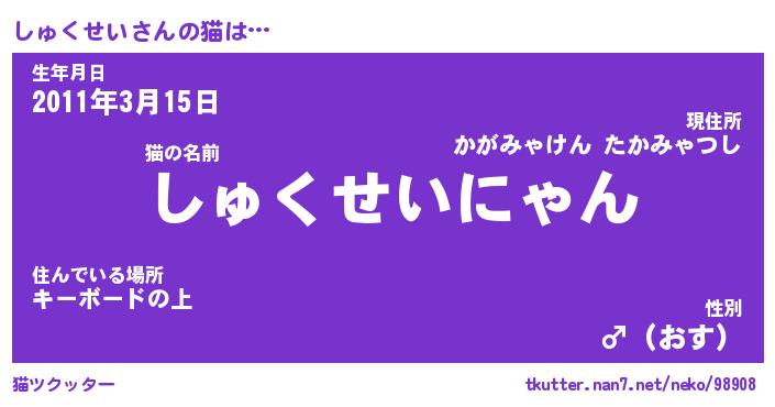 | ポケモン風あだ名 | 『シュチュウ』『シュクダネ』 |