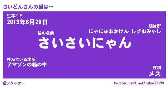 | 意味不明あだ名 | 『ペロリンさいどん』『永久保存さいどん』 |
