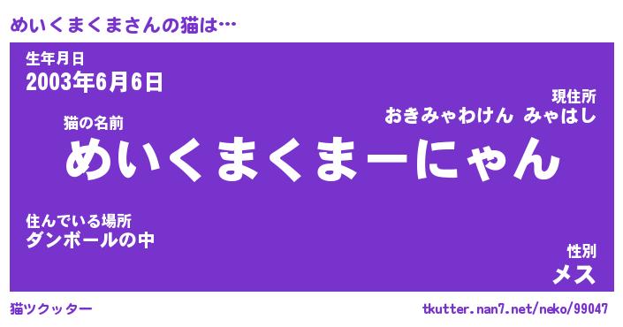 | 生年月日? …「くろねこ」 | 8月01日 10:16 |