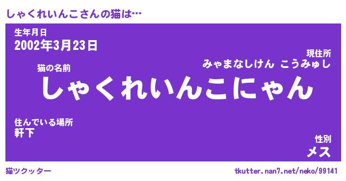 | ツイッター | しゃくれいんこさんのツイッターID『renkon_star』 |