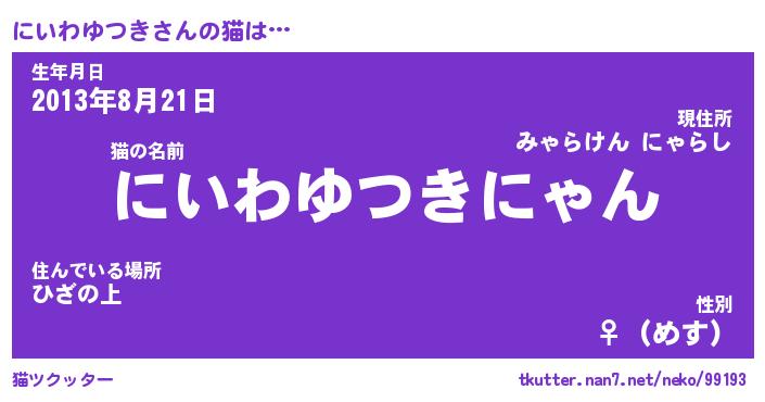 | ヒーロー風カッコイイあだ名 | 『スーパーニイワユツキ』『黄金騎士ニイ』 |