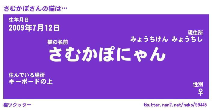 | 意味不明あだ名 | 『ペロリンさむかぽ』『永久保存さむかぽ』 |