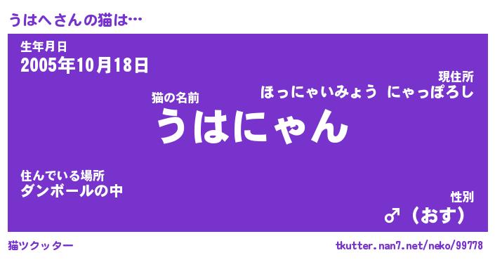 | ポケモン風あだ名 | 『ウハチュウ』『ウハヘダネ』 |