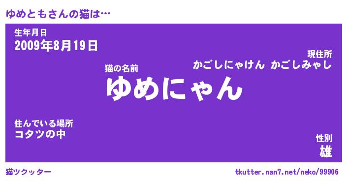 | ポケモン風あだ名 | 『ユメチュウ』『ユメトダネ』 |