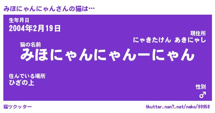 | 欧米人風あだ名 | 『マイケルみほにゃんにゃん』 |