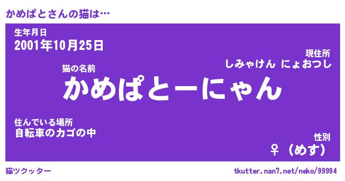 | 意味不明あだ名 | 『ペロリンかめぱと』『永久保存かめぱと』 |