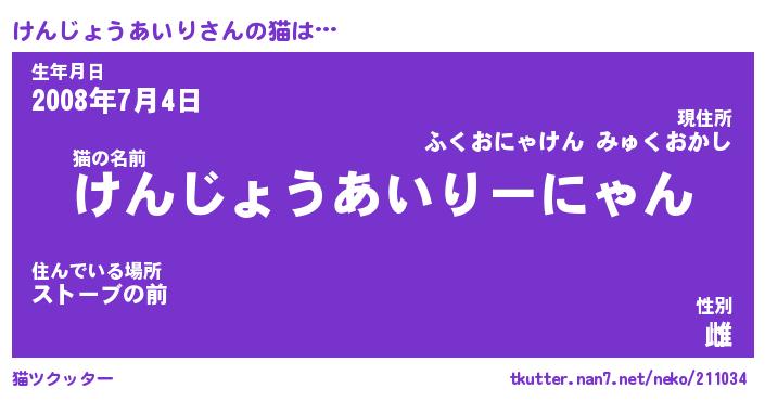 | ツイッター | けんじょうあいりさんのツイッターID『namakemono_idle』 |