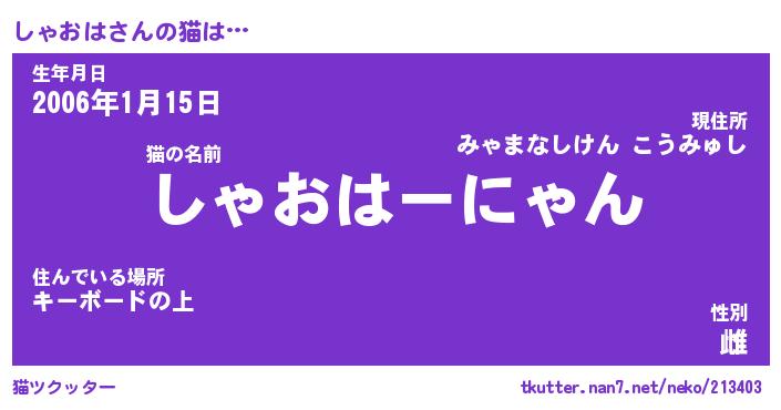 | 生年月日? …「くろねこ」 | 8月01日 10:16 |
