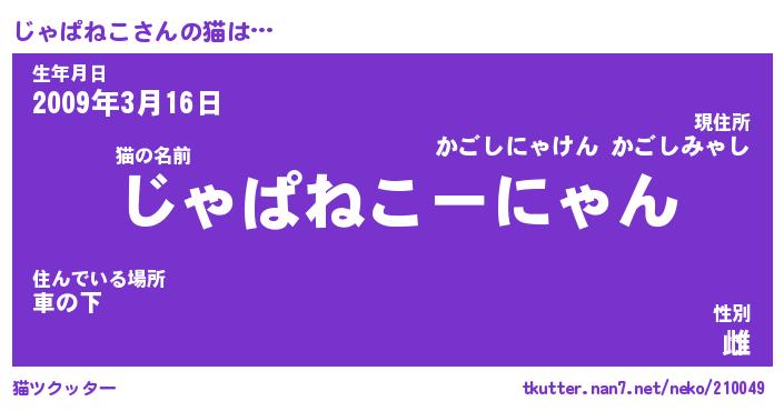 | 欧米人風あだ名 | 『マイケルじゃぱねこ』 |
