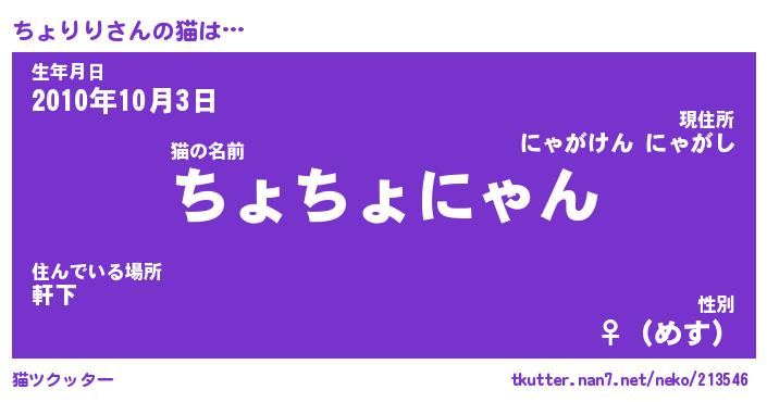 | ヘコむあだ名 | 『ちょにー』『牛乳』『ちょぷりん』 |