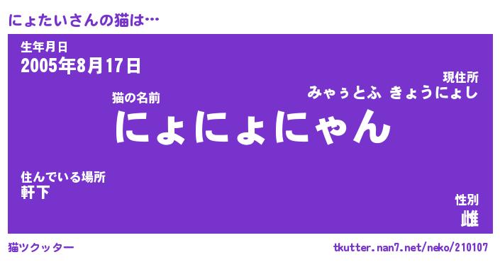 | ポケモン風あだ名 | 『ニョチュウ』『ニョタダネ』 |