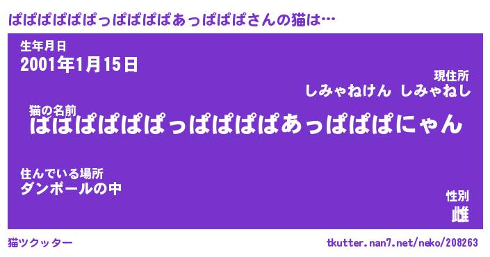 | 女子向けラノベタイトル風あだ名 | 『(仮)ぱぱぱぱぱぱっぱぱぱぱあっぱぱぱのやんごとなき事情』 |