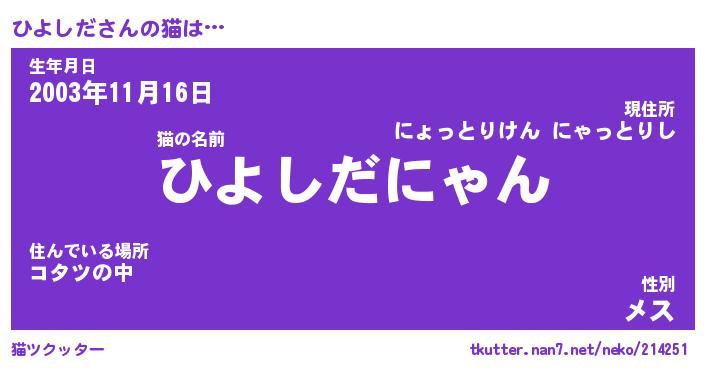 | ファンタジー風あだ名 | 『ヒヨフェル』『エターナルヒヨシダー』 |