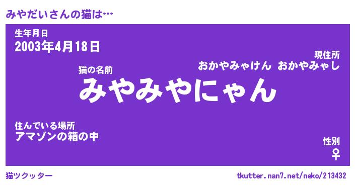 | ファンタジー風あだ名 | 『ミヤフェル』『エターナルミヤダイー』 |