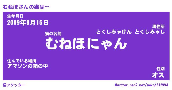 | ヘコむあだ名 | 『むねにー』『なまこ酢』『むね太郎』 |