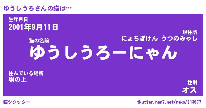 | ツイッター | ゆうしうろさんのツイッターID『fukuyoka_nyan』 |