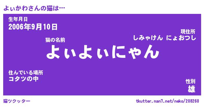 | 2回繰り返すあだ名 | 『よぃよぃ』『よよぃぃ』『ぬるぬる』 |