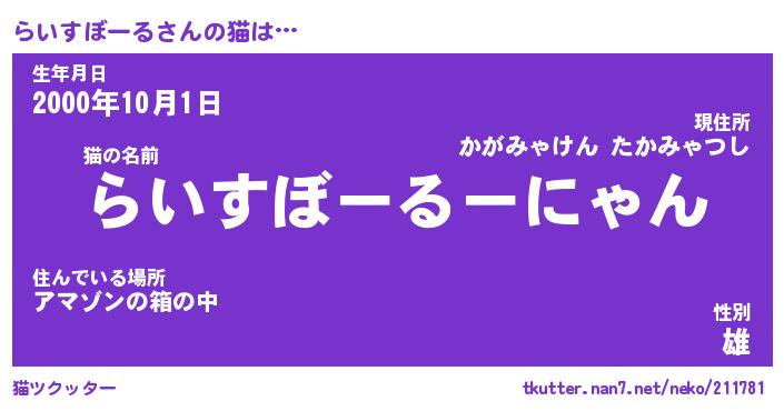 | 生年月日? …「くろねこ」 | 8月01日 10:16 |