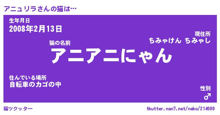 | ツイッター | アニュリラさんのツイッターID『namakemono_man』 |