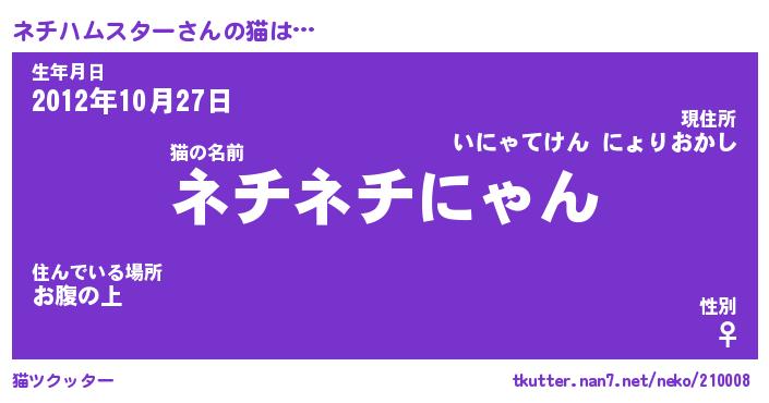 | 料理風あだ名 | 『節約★ネチハムスターと油揚げの玉子丼』 |