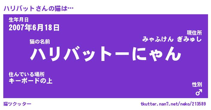| ファンタジー風あだ名 | 『ハリフェル』『エターナルハリバットー』 |