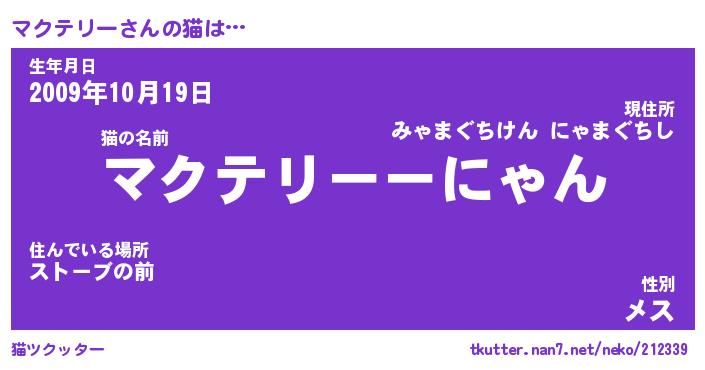 | 2回繰り返すあだ名 | 『マクマク』『ママクク』『ぬらぬら』 |