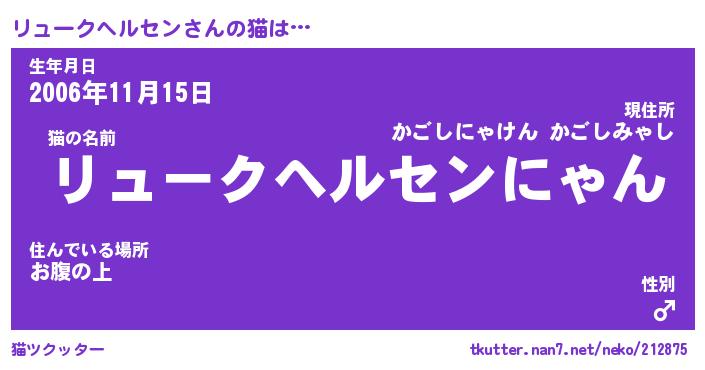 | 男性向けラノベタイトル風あだ名 | 『リュークヘルセンの憂鬱』 |