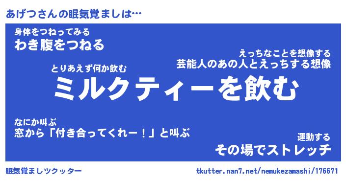 | ヘコむあだ名 | 『あげっふぃ~』『牛乳』『あげっ子』 |