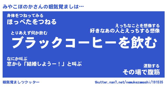| ヘコむあだ名 | 『みやっふぃ~』『なまこ酢』 |