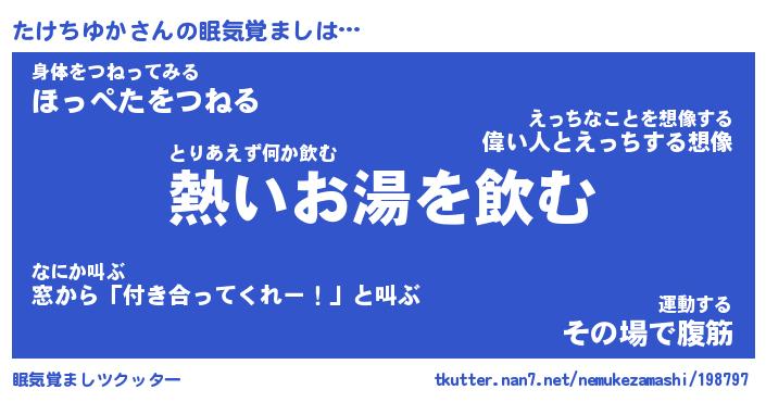 | ヘコむあだ名 | 『たけもー』『酢こんぶ』『たけっぺ』 |
