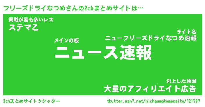 | 男性向けラノベタイトル風あだ名 | 『フリーズドライなつめの憂鬱』 |