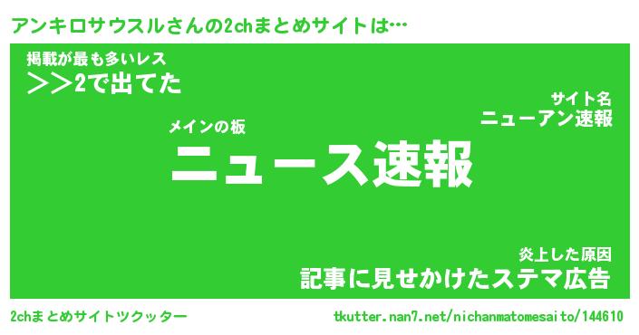 | 草はえるンゴwww …「あ」 | 2月28日 07:21 |