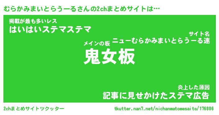 | 男性向けラノベタイトル風あだ名 | 『むらかみまいとらうーるの憂鬱』 |