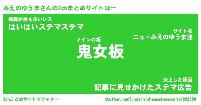 | 胡散臭い通販商品みたいなあだ名 | 『モテモテ間違いなしブレスレット…その名も「みえのゆうま」』 |