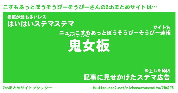 | ツイッター | こすもあっとぼうそうぴーそうぴーさんのツイッターID『katatsumuri_star』 |