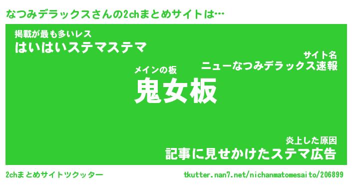 | 男性向けラノベタイトル風あだ名 | 『なつみデラックスの憂鬱』 |