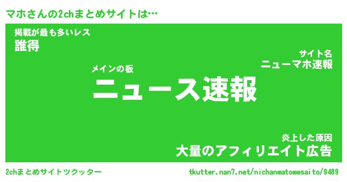マホさんの2chまとめサイトは… メインの板『ニュース速報』掲載が最も多いレス『誰得』炎上した原因『大量のアフィリエイト広告』 ツクッター #2chまとめサイトツクッター http://tkutter.nan7.net/nichanmatomesaito/9489/